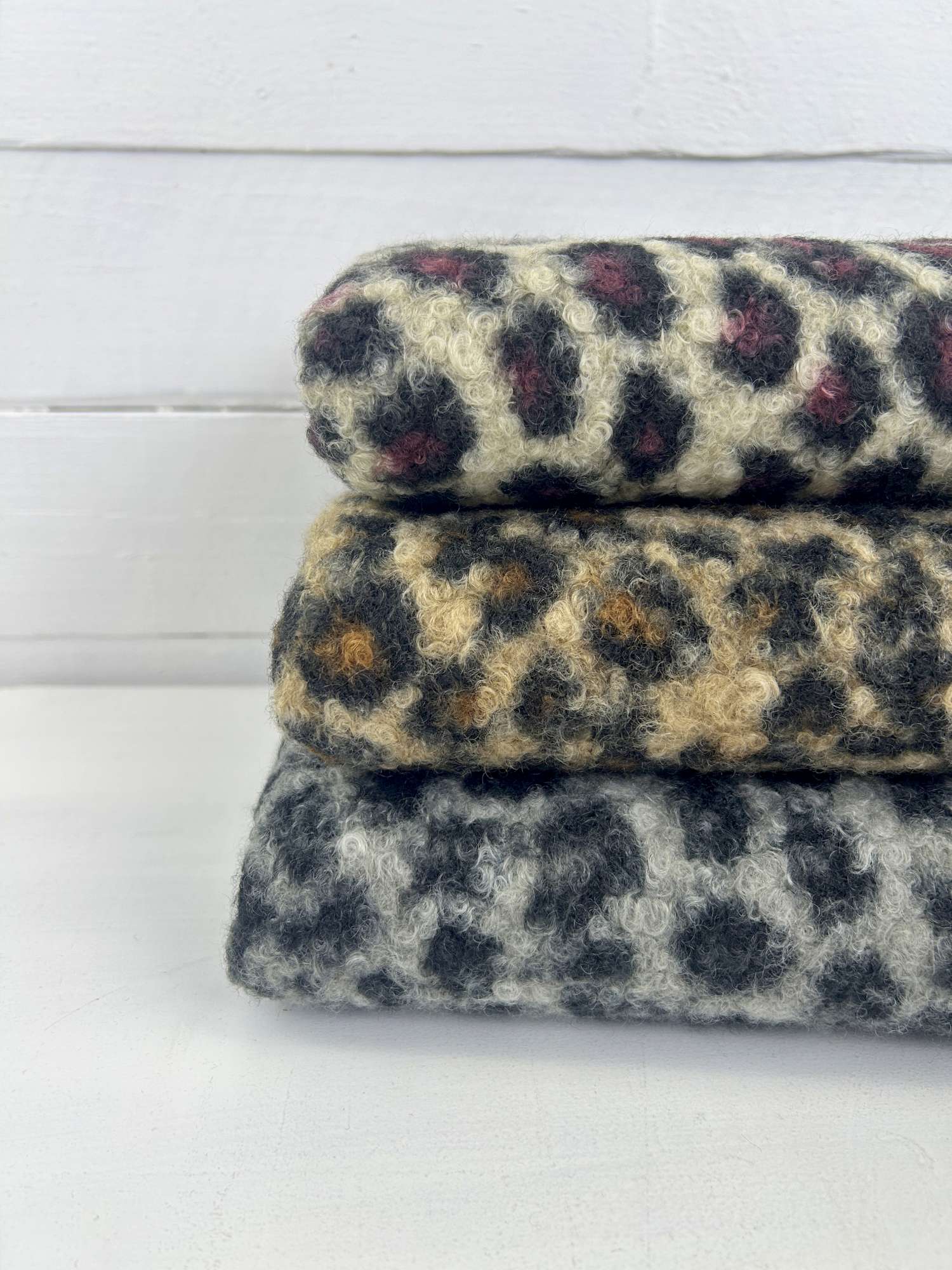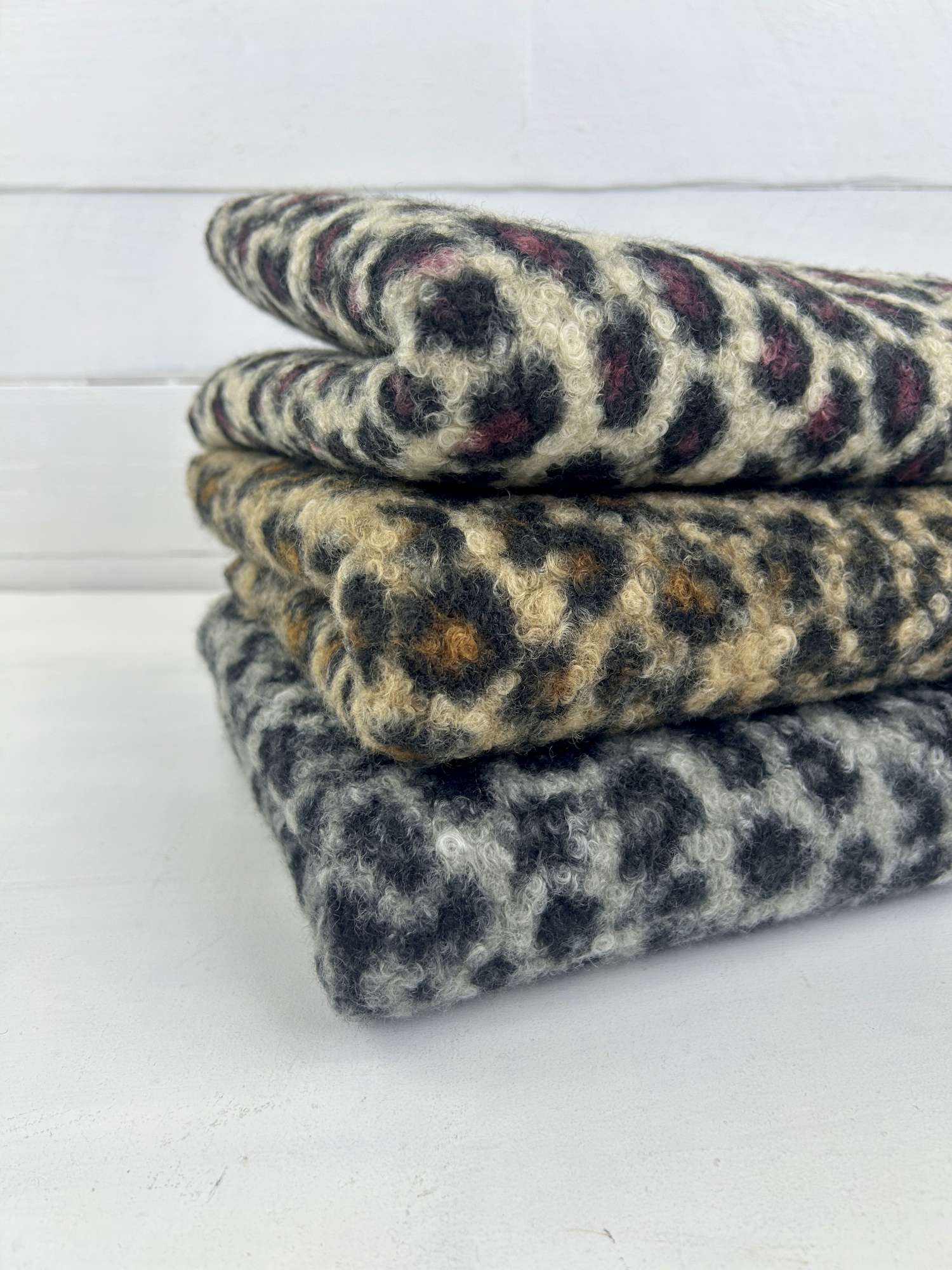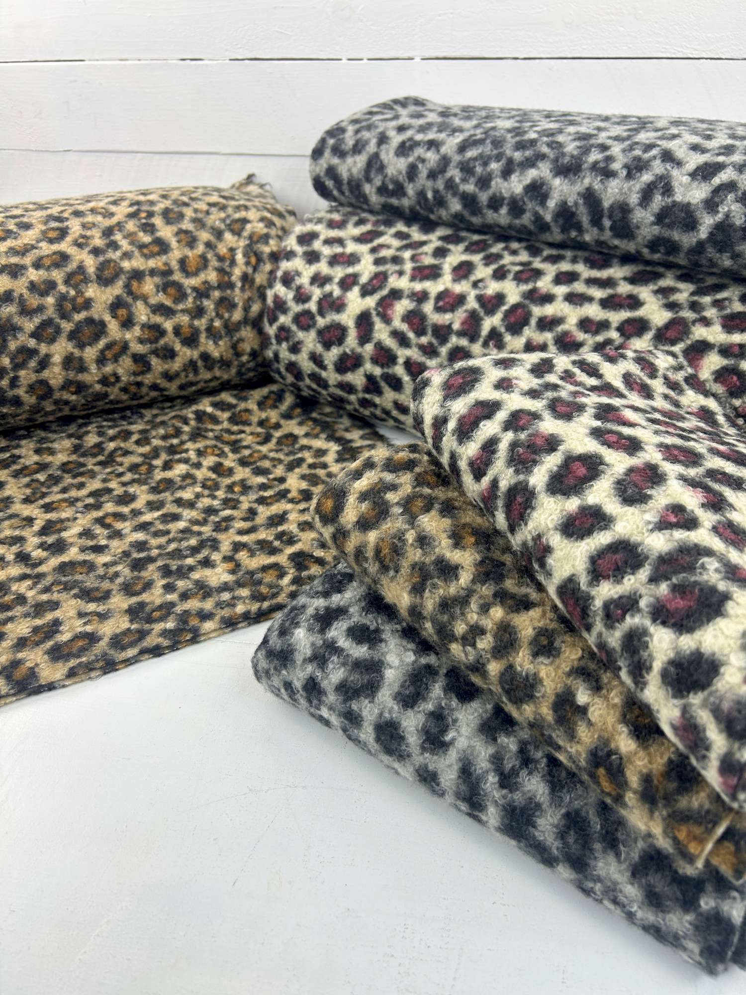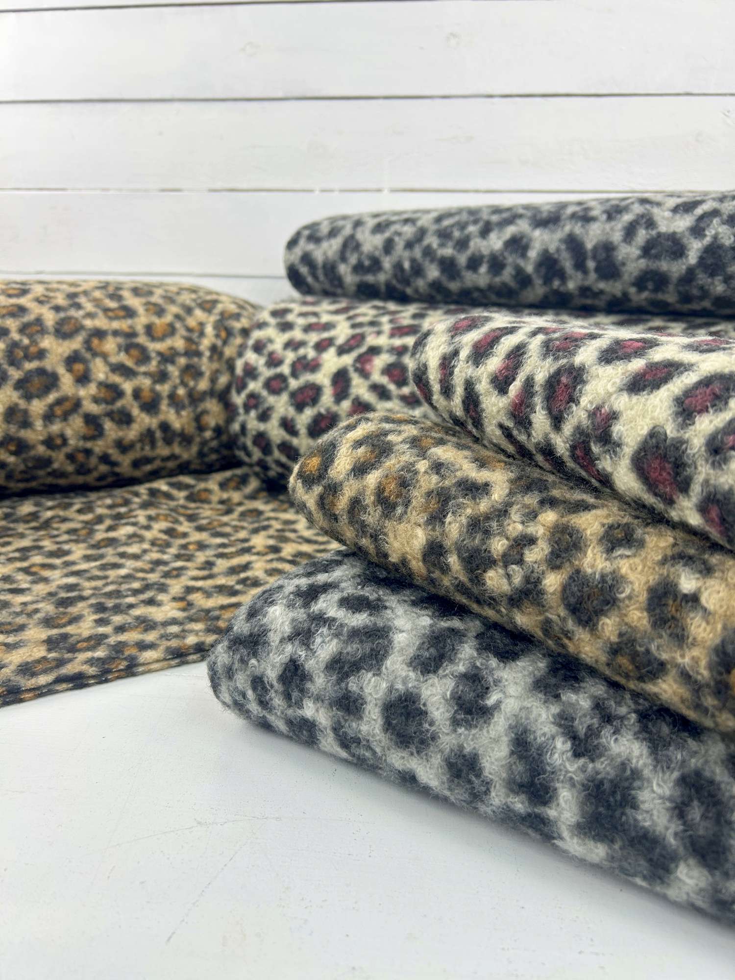 Sein besonderes Bouclé-Strickgewebe mit feinem Leo-Design verleiht ihm einen modernen, trendbewussten Look, während die Teddy-Oberfläche unglaublich flauschig und voluminös wirkt. Der Stoff ist auf der Rückseite angenehm glatt gestrickt, was das Nähen erleichtert und für einen sauberen Fall sorgt.