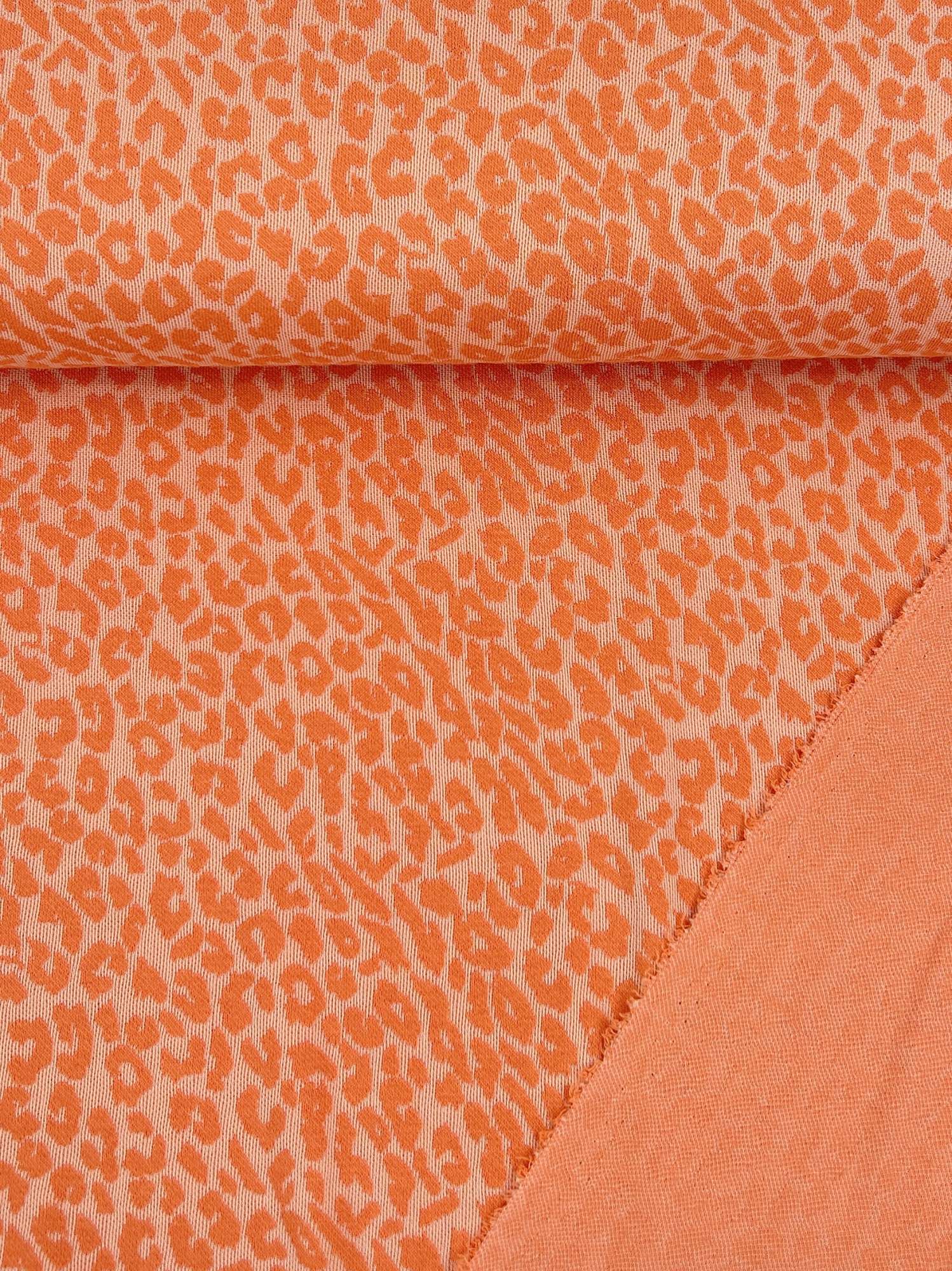 Leo Jacquard Koralle – leichter Stretchstoff mit Animalmuster