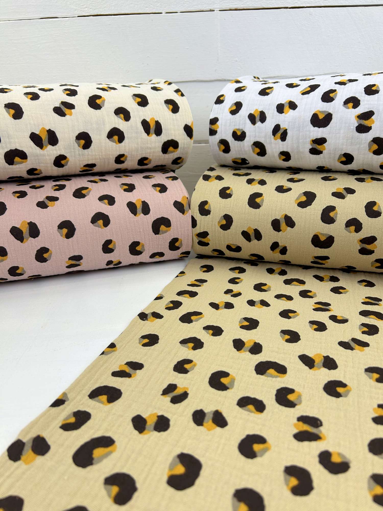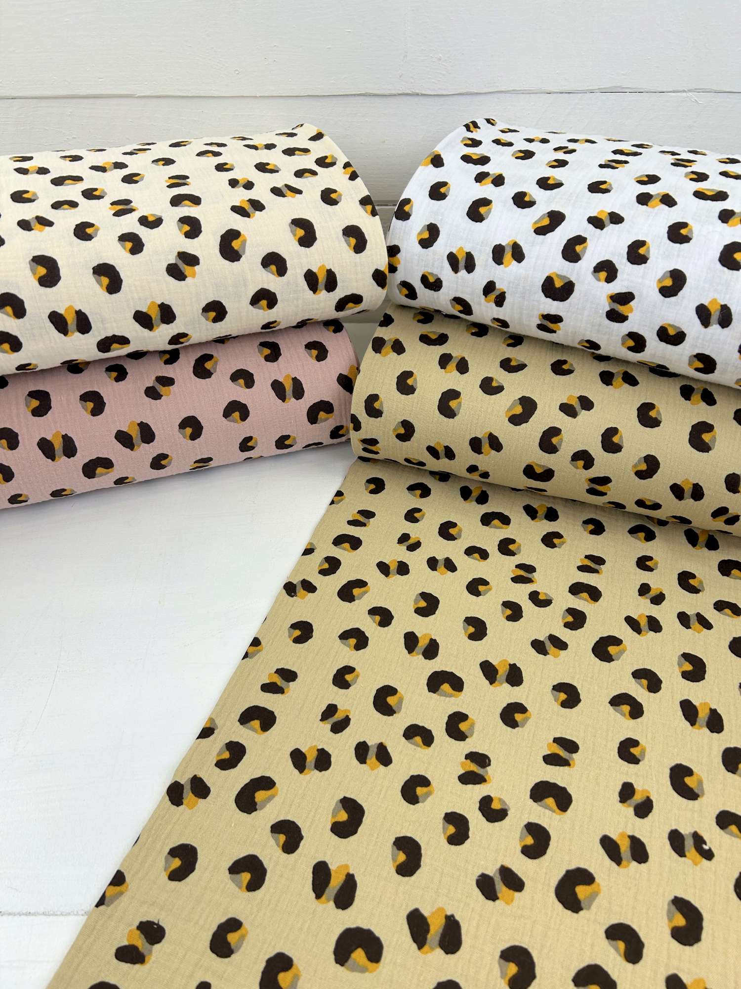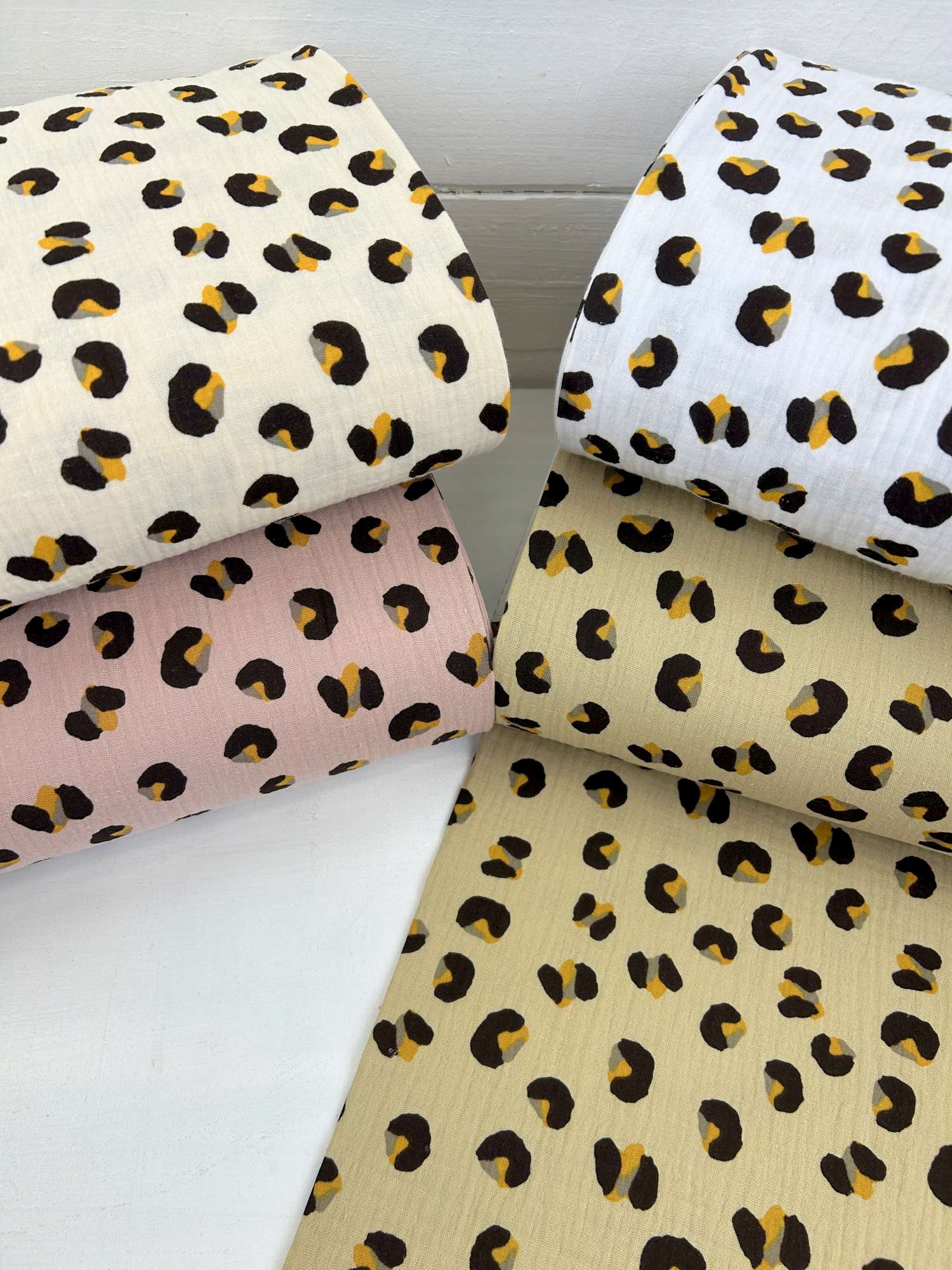 Der Musselin Leo Neu ist in vier Farben erhältlich: rosa, natur, creme und weiß – ideal, um Projekte Ton-in-Ton umzusetzen oder bewusst Kontraste zu setzen.