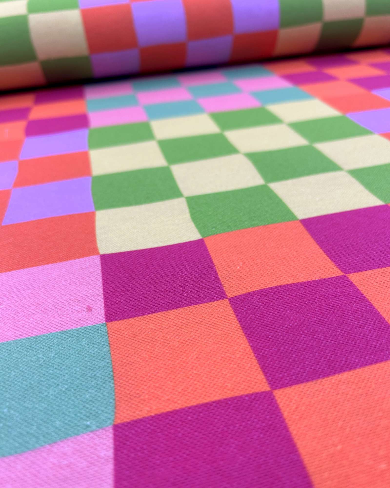 Dieser Canvas ist nichts für langweilige Projekte. „Joyful“ bringt genau das, was der Name verspricht: kräftige Farben, klare Muster und sofort sichtbare Wirkung. Streifen und Karos in leuchtenden Tönen machen jedes Nähprojekt zum Hingucker – egal ob Tasche, Kissen oder Deko.