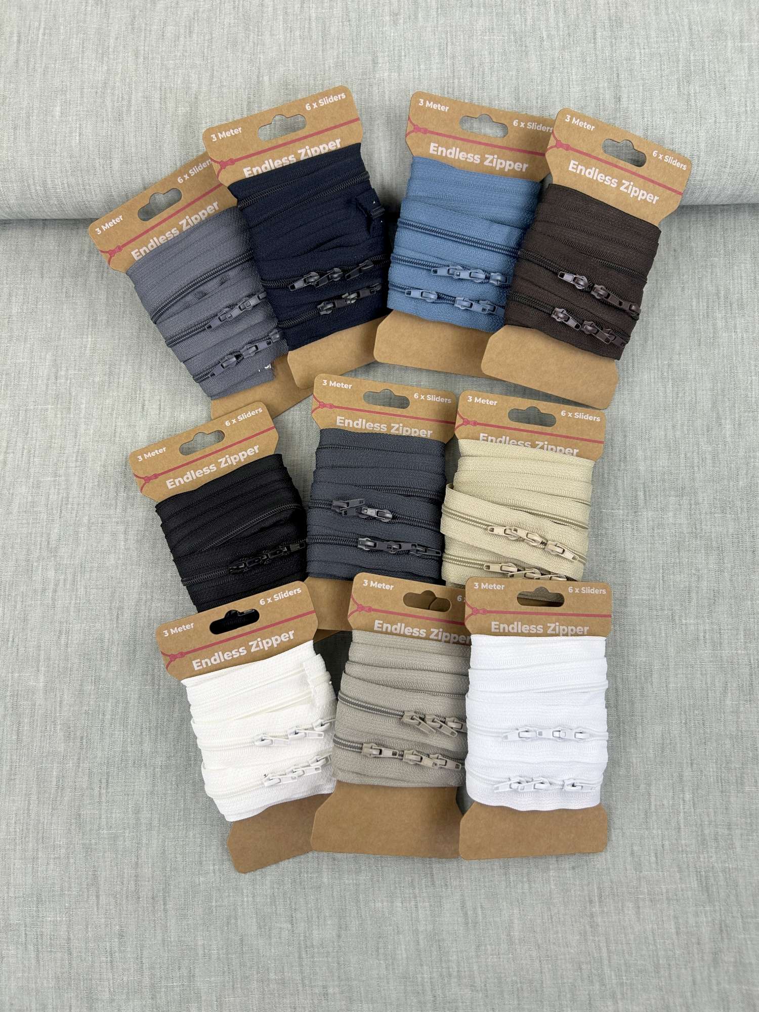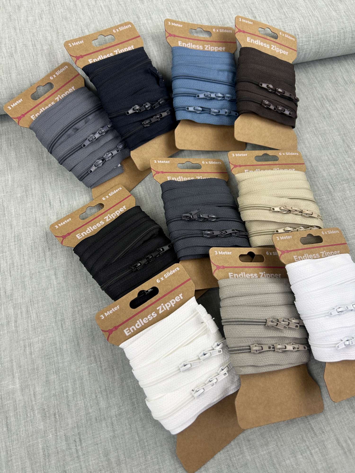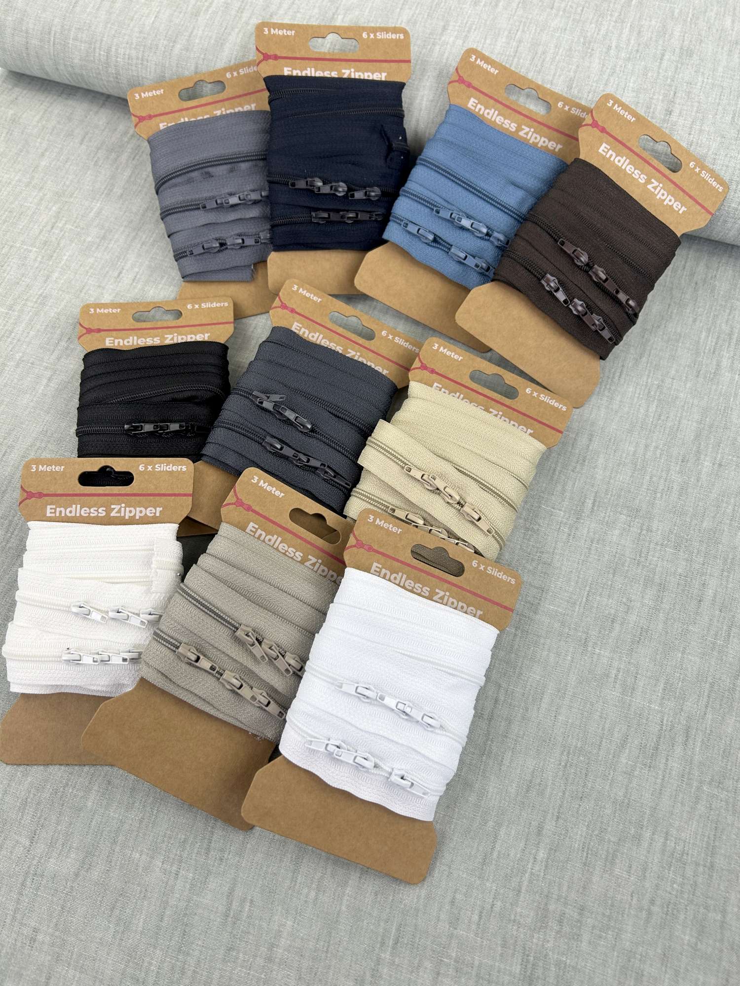 Du bekommst 3 Meter Endloßreissverschluss mit 6 Zippern.