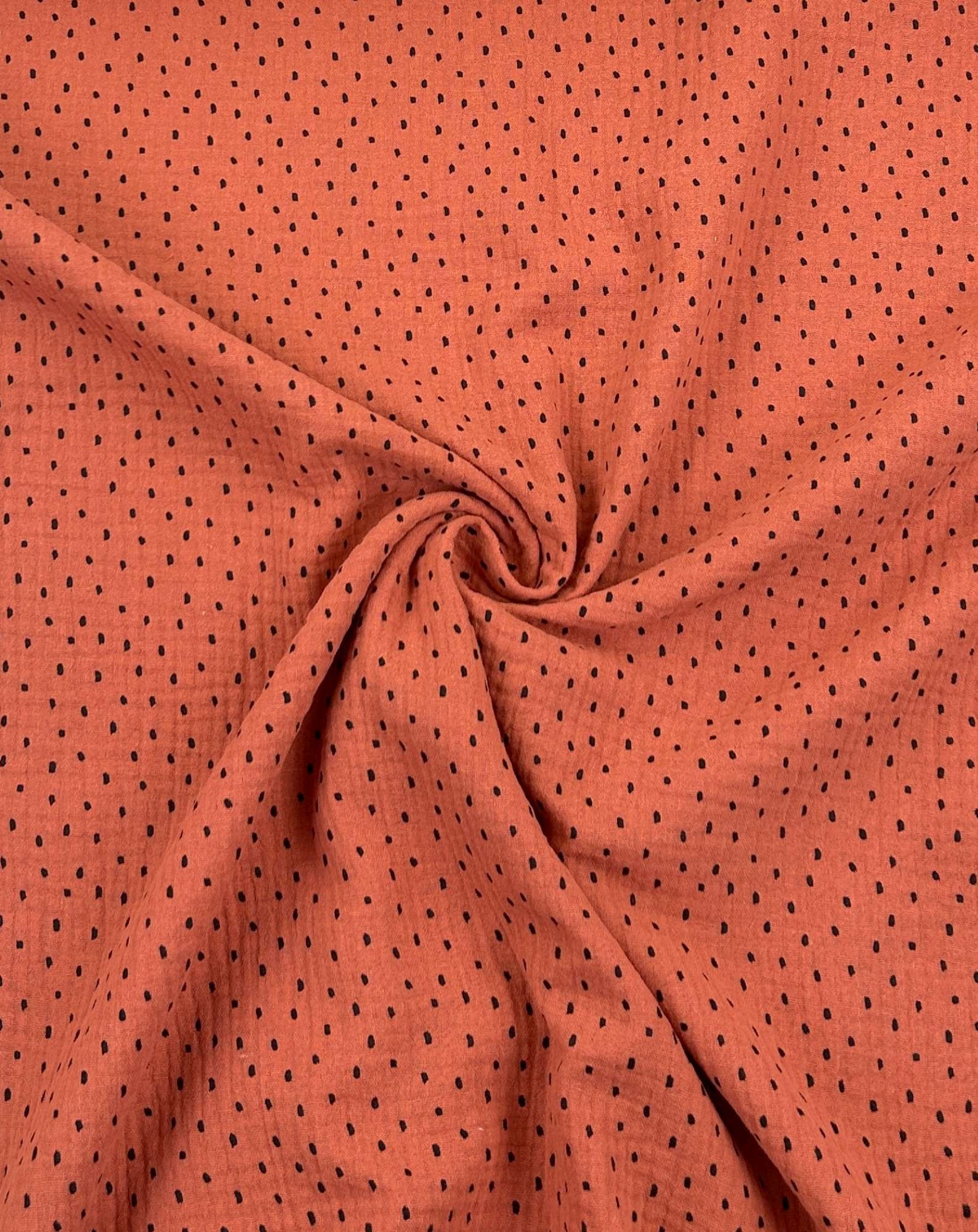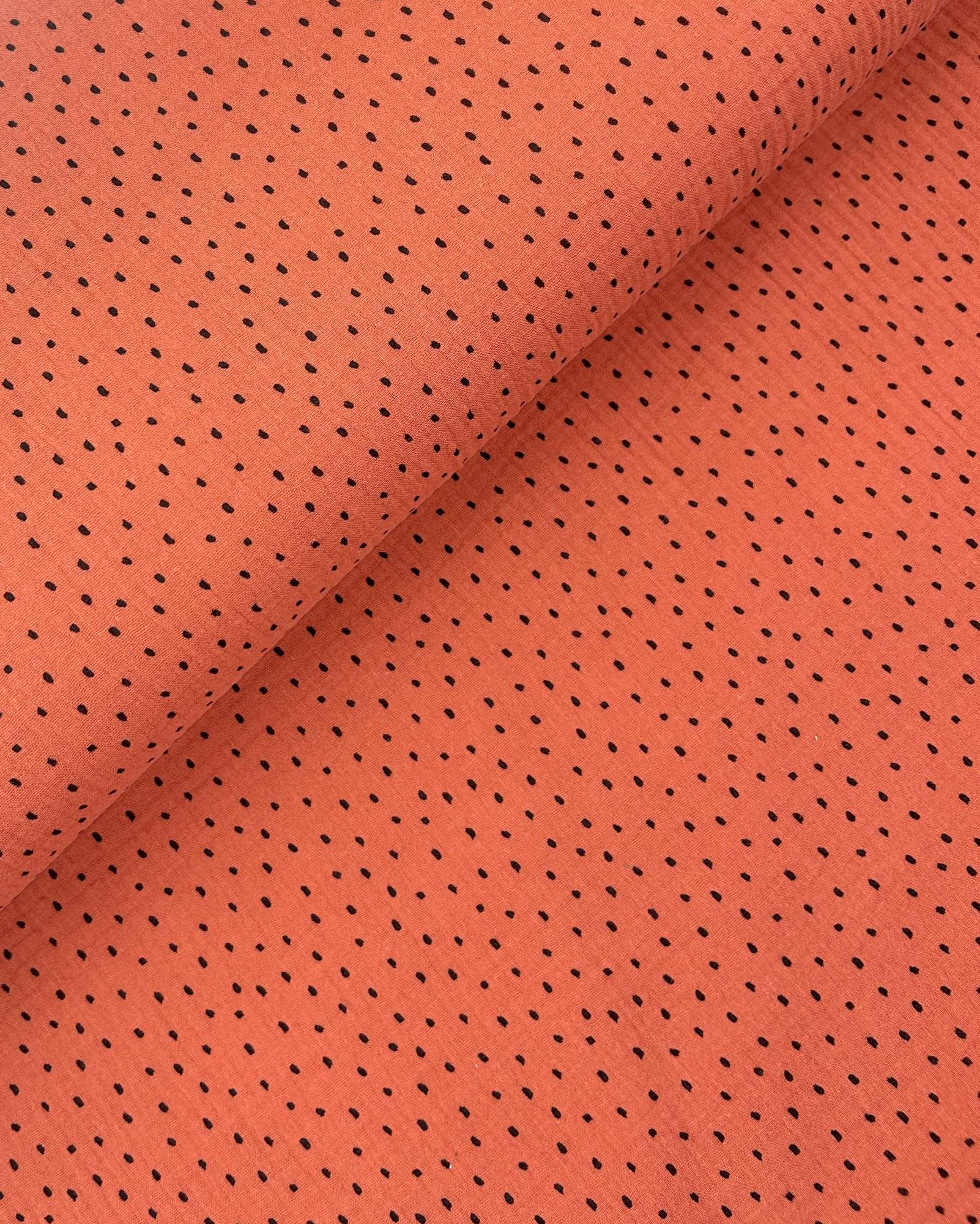 Musselin Punkte Terracotta – moderner Baumwollstoff mit feinem Allover-Print