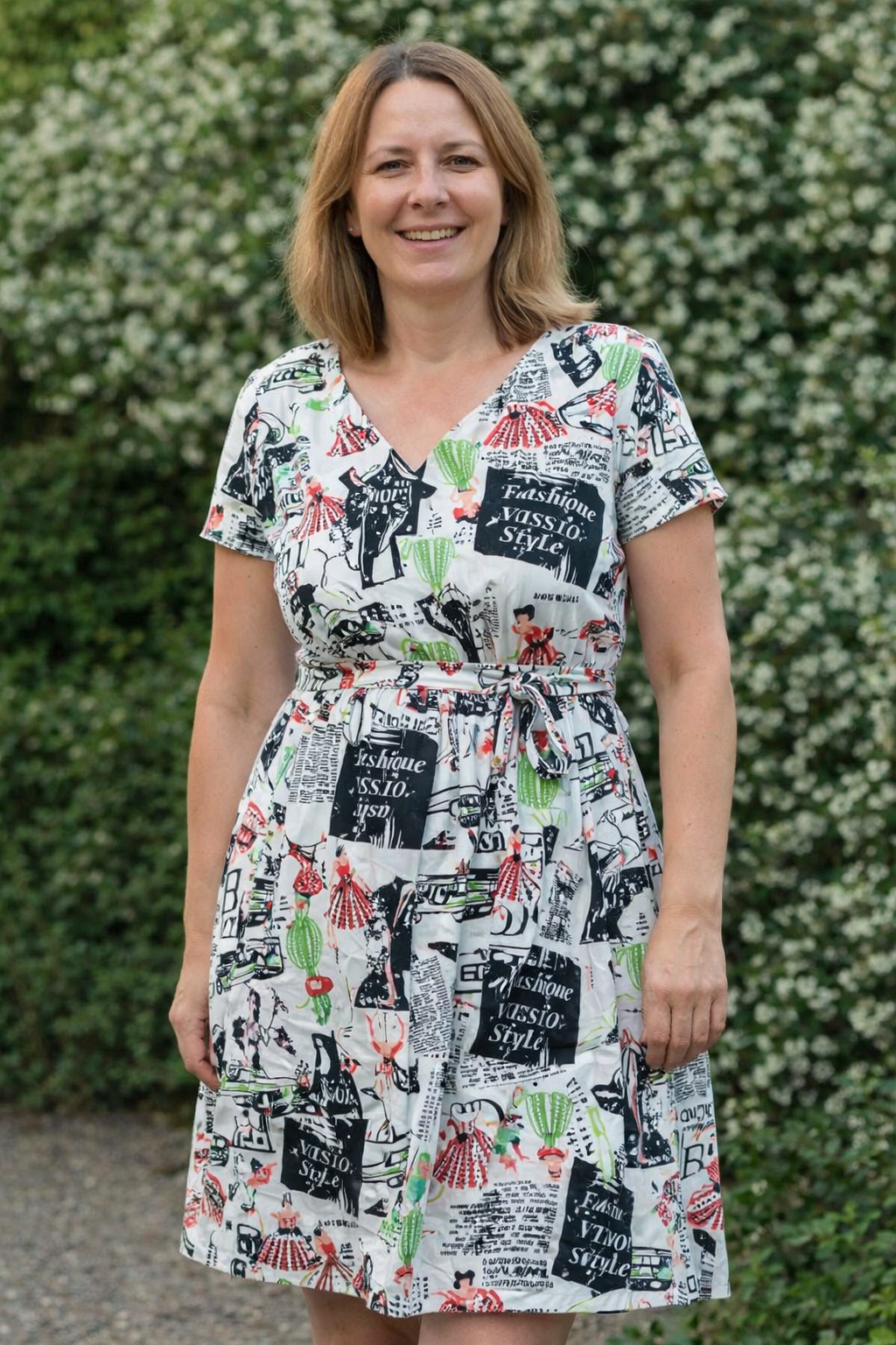 Durch den Print wirkt selbst ein einfacher Schnitt sofort besonders – oft reicht schon eine schlichte Bluse oder ein gerader Rock.