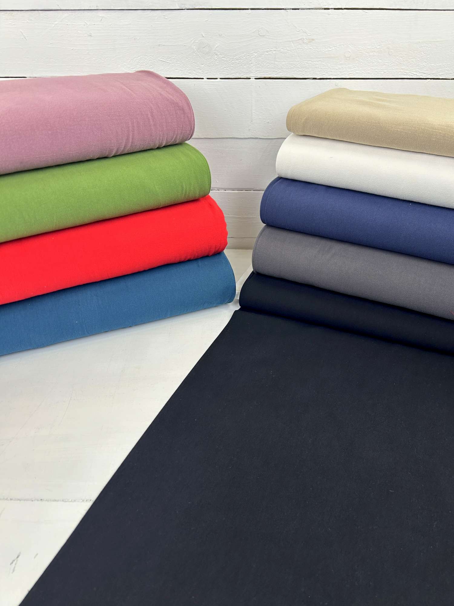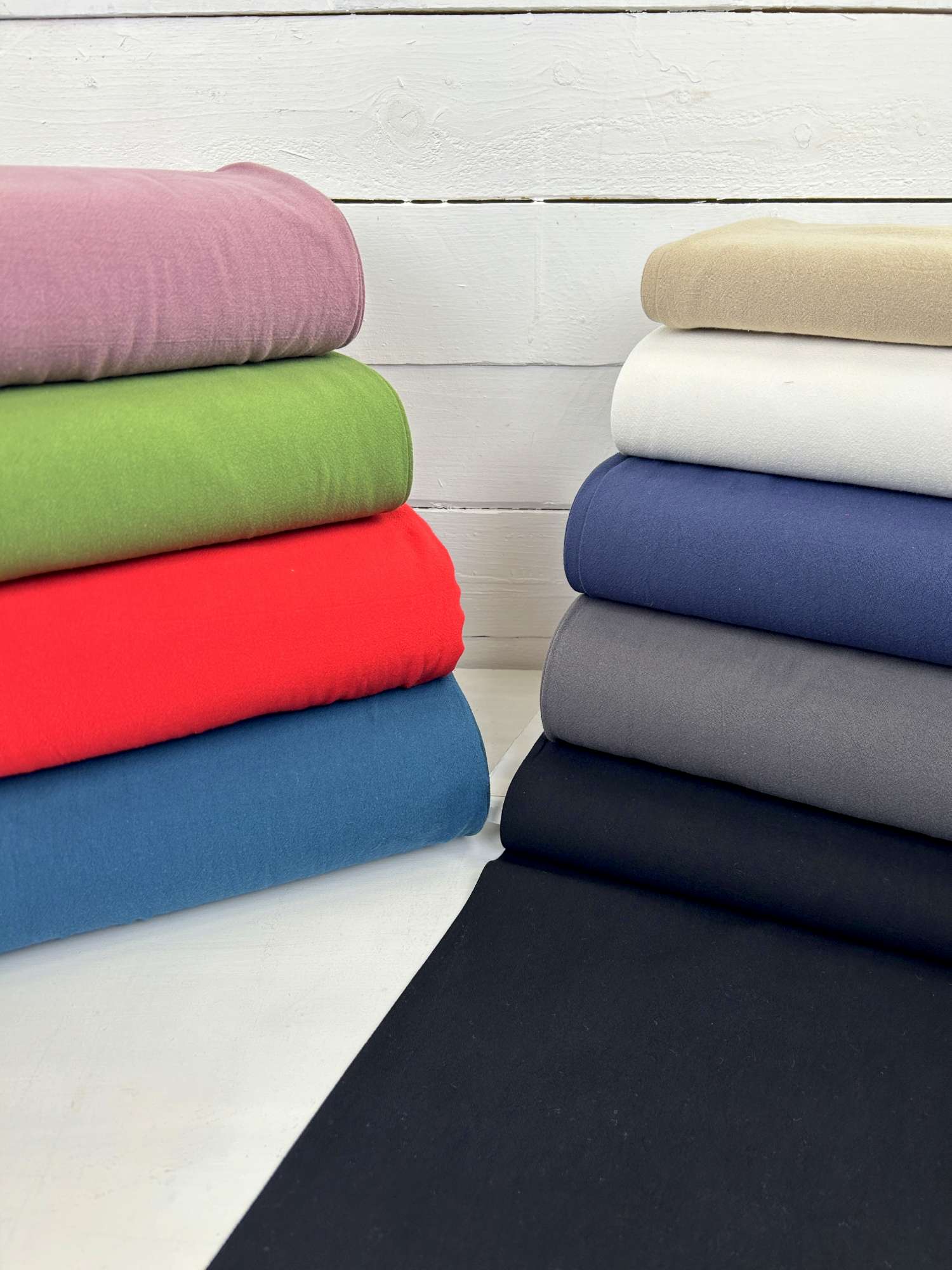 Durch die feine Struktur wirkt der Stoff auch in Uni alles andere als langweilig. Er bringt Tiefe in schlichte Schnitte und funktioniert sowohl in ruhigen Naturtönen als auch in kräftigen Farben. Genäht werden daraus unter anderem Blusen, Tuniken, Kleider, Röcke, Hemden oder leichte Hosen. Auch im Kinderbereich ist der Stoff sehr beliebt, da er angenehm weich ist und gleichzeitig robust genug für den Alltag bleibt. Kunden nutzen ihn außerdem gerne für kreative Projekte wie Schultüten, Kissenhüllen, Taschen oder andere dekorative Nähideen – genau dort, wo ein Stoff gefragt ist, der etwas Struktur mitbringt, aber nicht zu schwer wirkt.