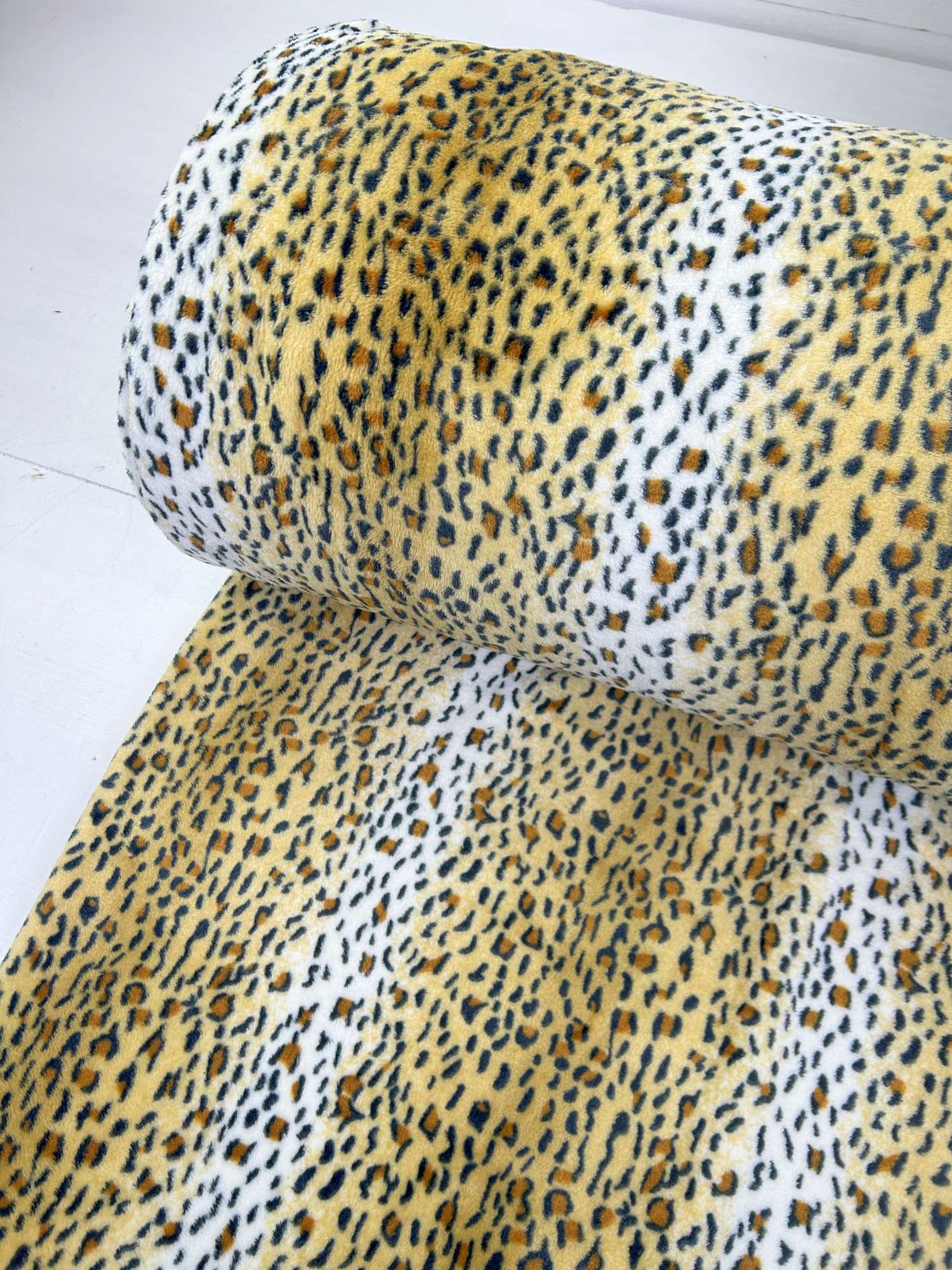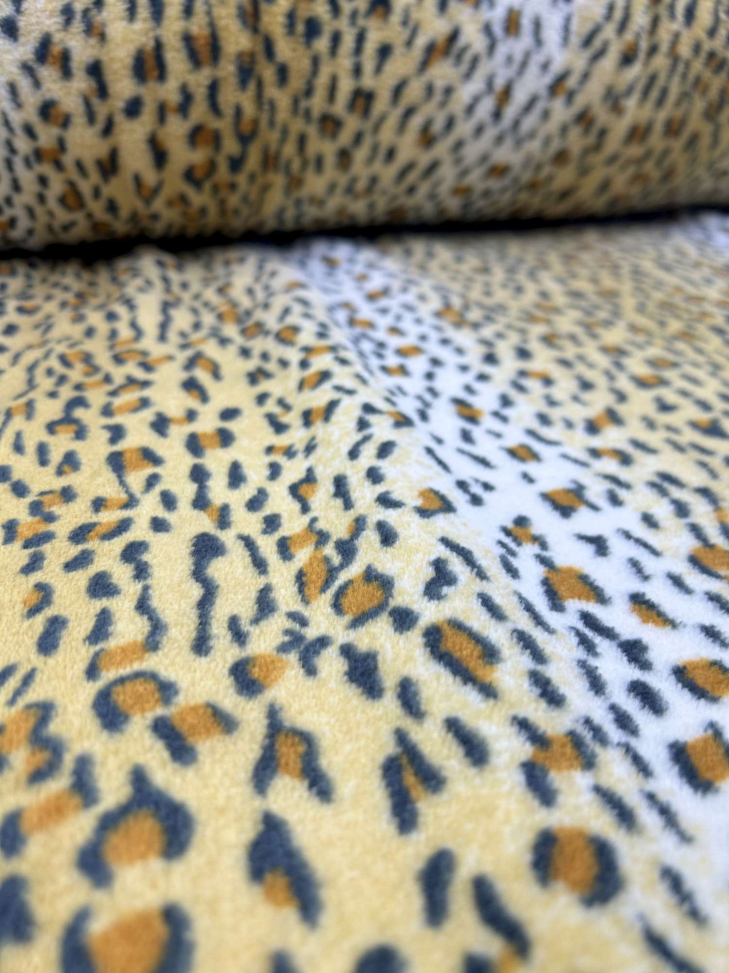 Mit diesem Wellness Fleece im originalen Leo-Design holst Du Dir das ultimative Kuschelerlebnis nach Hause – wild und trotzdem unglaublich weich! Der Stoff bringt eine tierisch gute Mischung aus Komfort und Stil mit sich. Egal, ob Du eine gemütliche Decke für kalte Winterabende, flauschige Kissen oder sogar einen stylischen Hausanzug nähen möchtest, dieser Fleece ist Dein perfekter Begleiter. Das Leo-Muster verleiht Deinem Zuhause oder Deiner Garderobe einen Hauch von Safari-Abenteuer, ohne dass Du auf die gewohnte Gemütlichkeit verzichten musst.