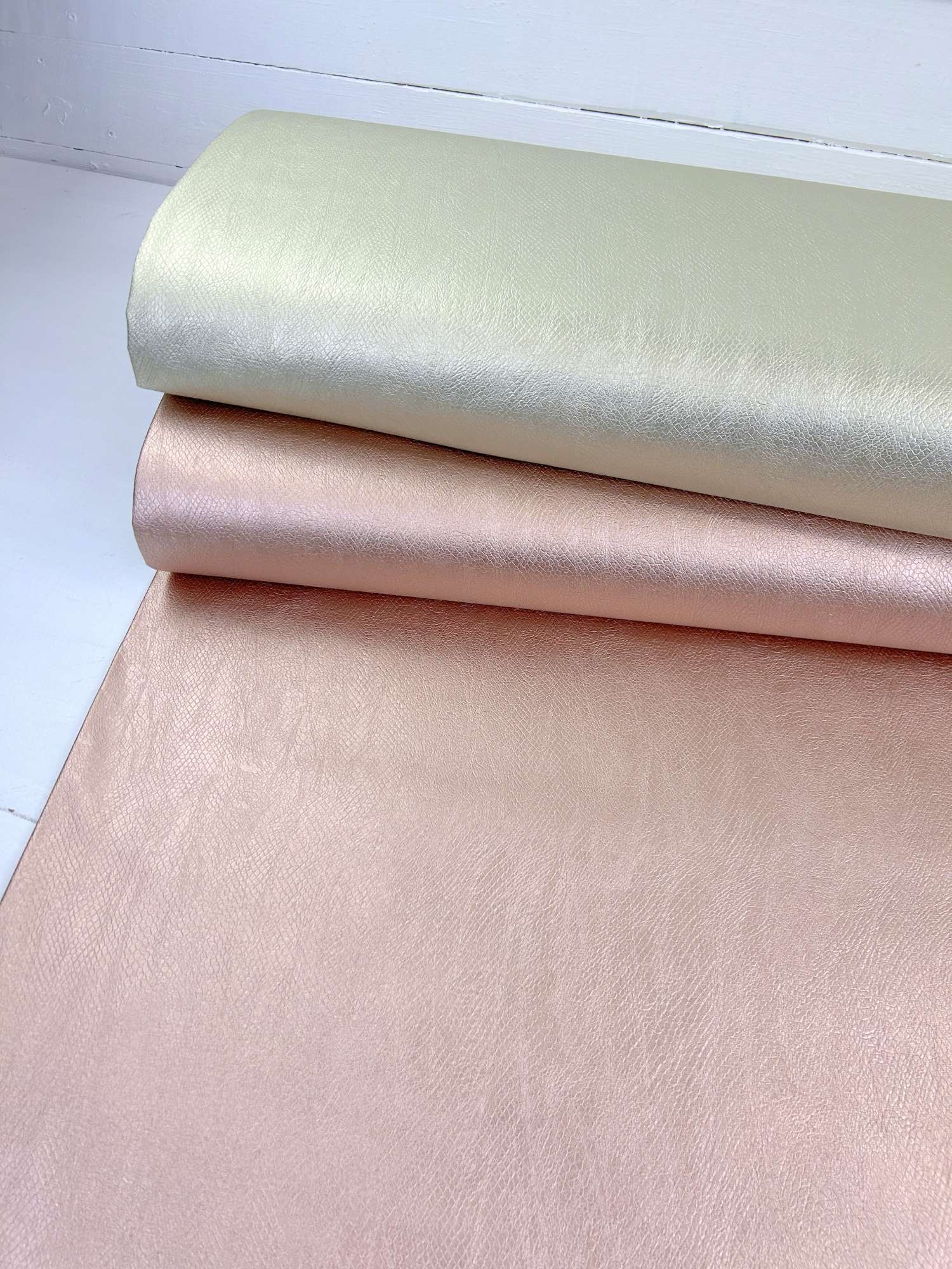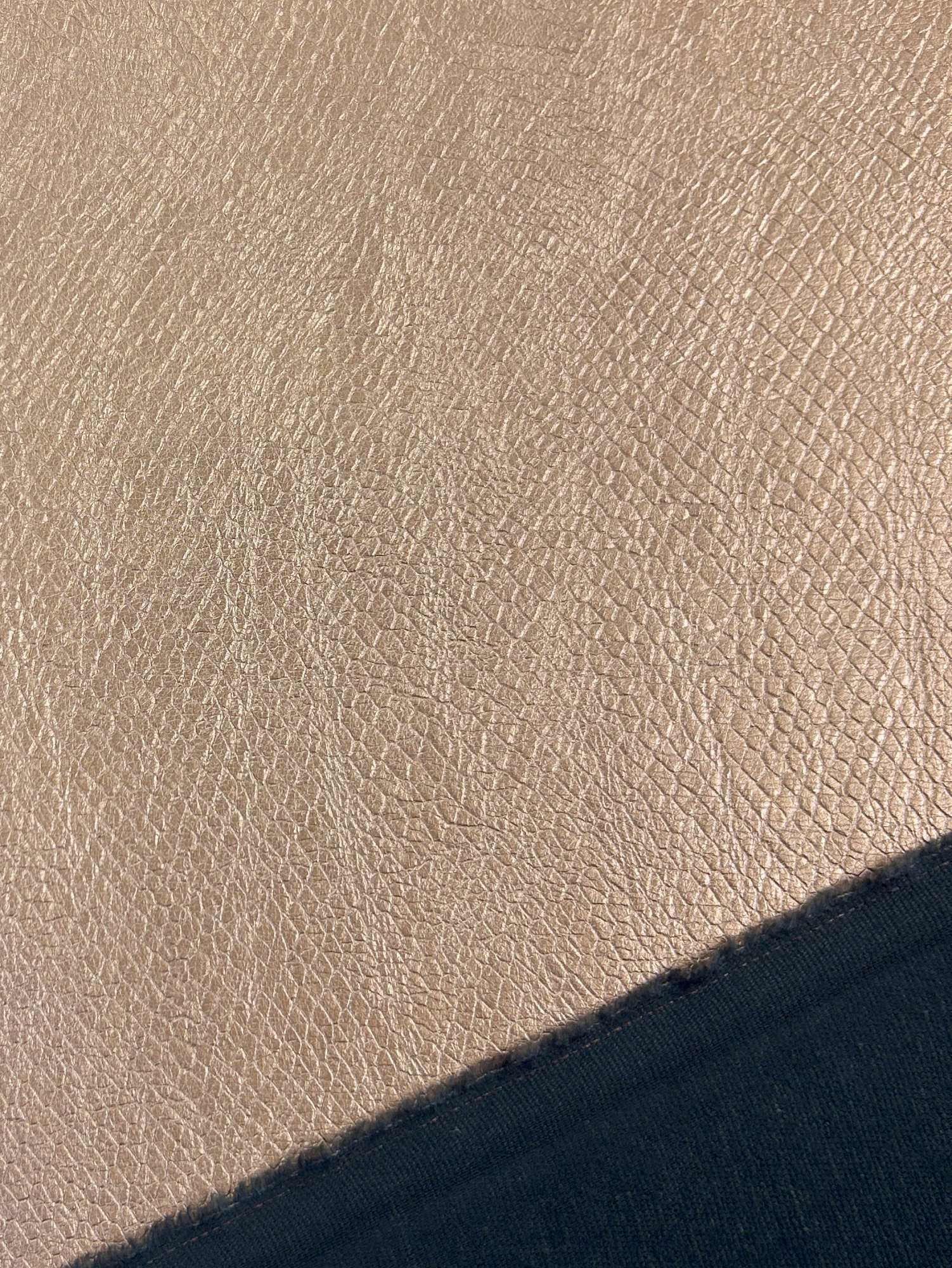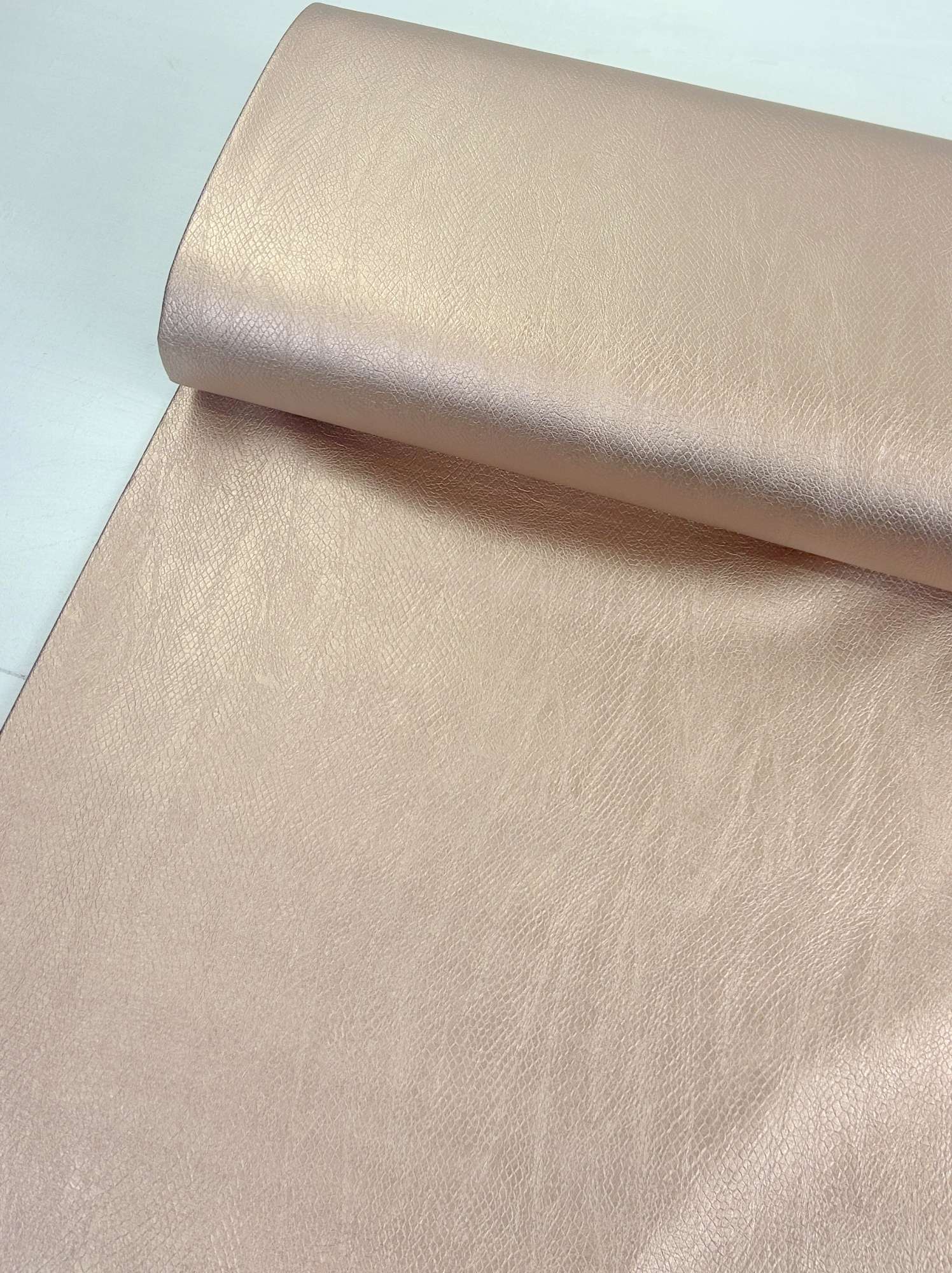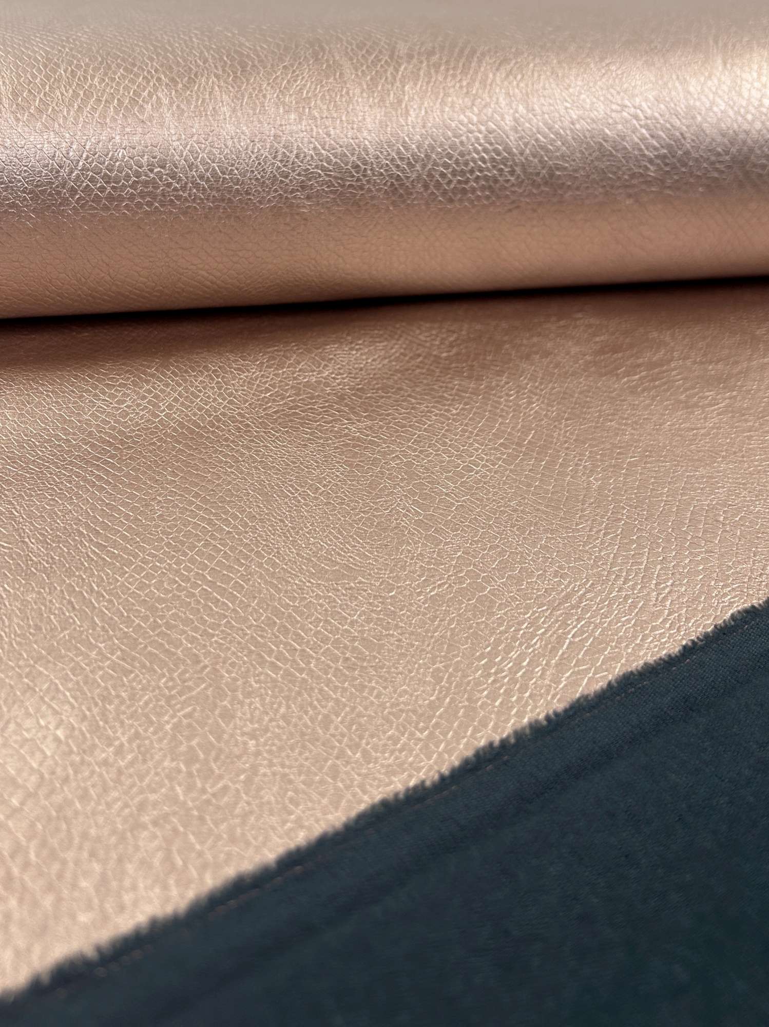 Dieses glänzende Kunstleder hat eine elegante, leicht glänzende Oberfläche mit feiner Struktur. Der Look wirkt hochwertig und modern, gleichzeitig ist das Material angenehm weich, gut zu führen und stabil genug für Taschen, Accessoires und Deko. Die Polyesterbasis macht das Kunstleder pflegeleicht, formstabil und unproblematisch beim Zuschneiden, da es nicht ausfranst. Mit einer Breite von etwa 140 cm und einem Gewicht von rund 200 g/m² eignet es sich ideal für Projekte, die einen edlen Metallic-Effekt brauchen.