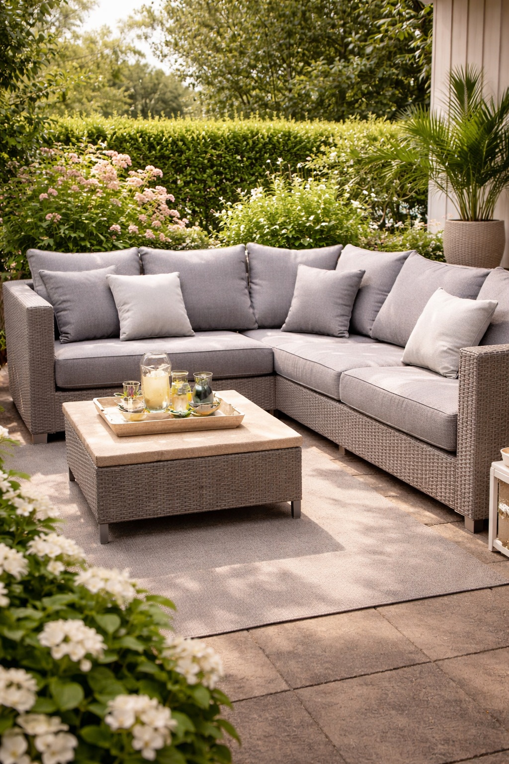 Perfekt für Markisen, Grillüberwürfe, Terassenmöbelabdeckungen etc.Dieser Outdoor Stoff in moderner Polsteroptik ist genau das, was du brauchst, wenn es draußen richtig was