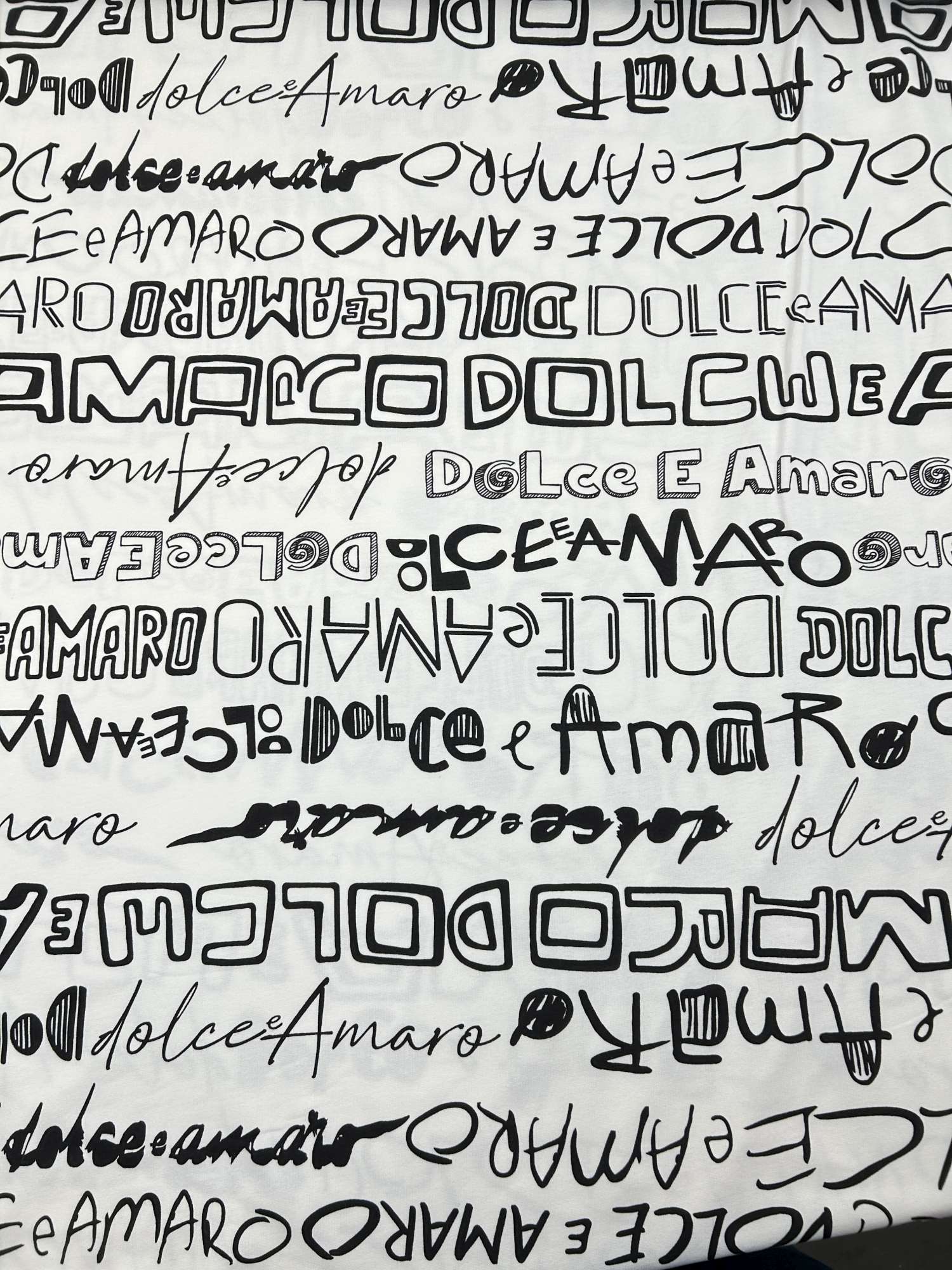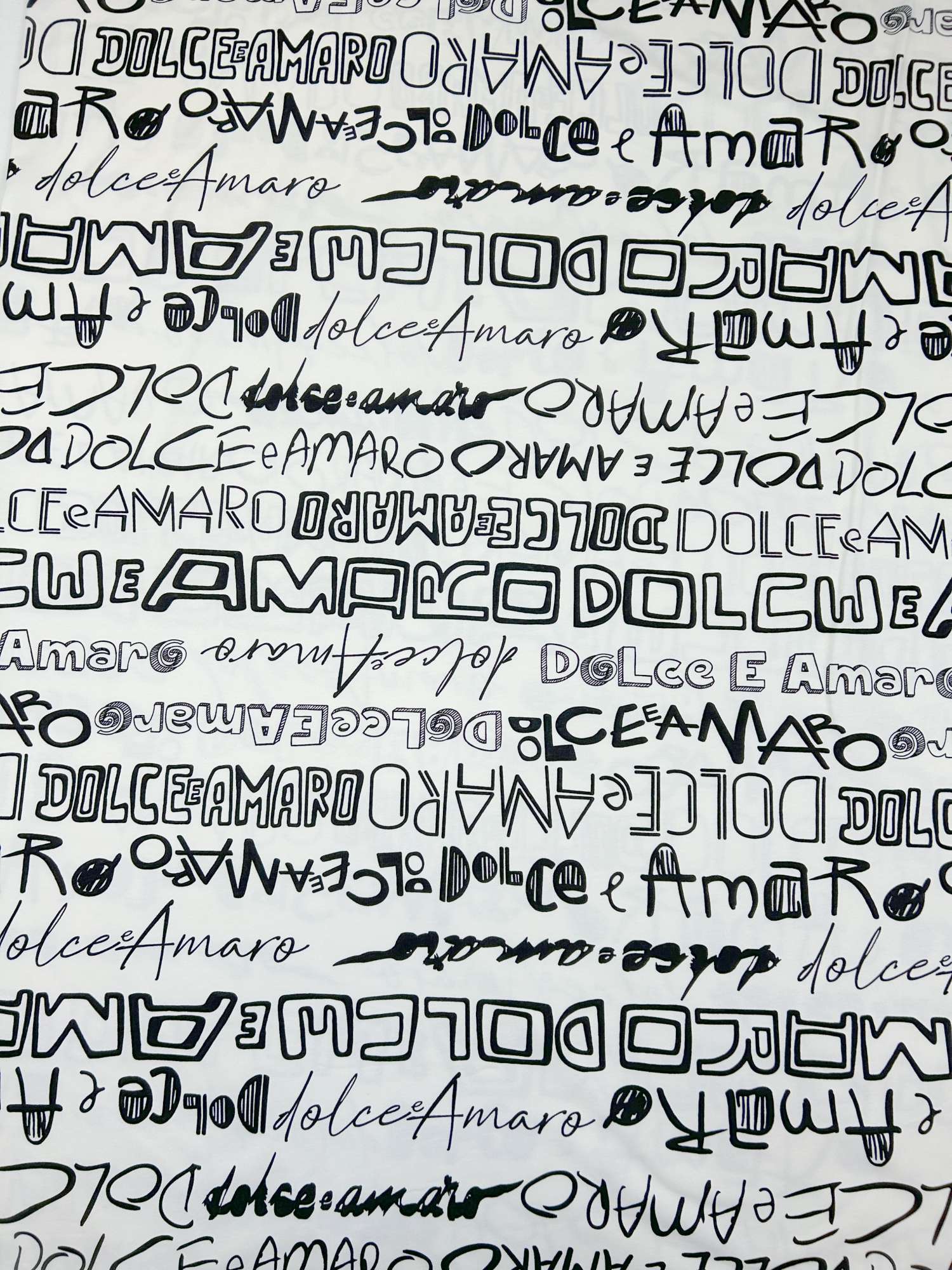 „Dolce & Amaro“ bedeutet übersetzt „süß & bitter“ – ein spannender Gegensatz, der perfekt in die heutige Zeit passt. Genau dieses Spiel aus Kontrasten macht den Stoff so stark. Das Statement wirkt nicht laut oder überladen, sondern dezent cool, selbstbewusst und stilvoll. Kein plakatives Motiv, sondern ein subtiler Blickfang mit Charakter.