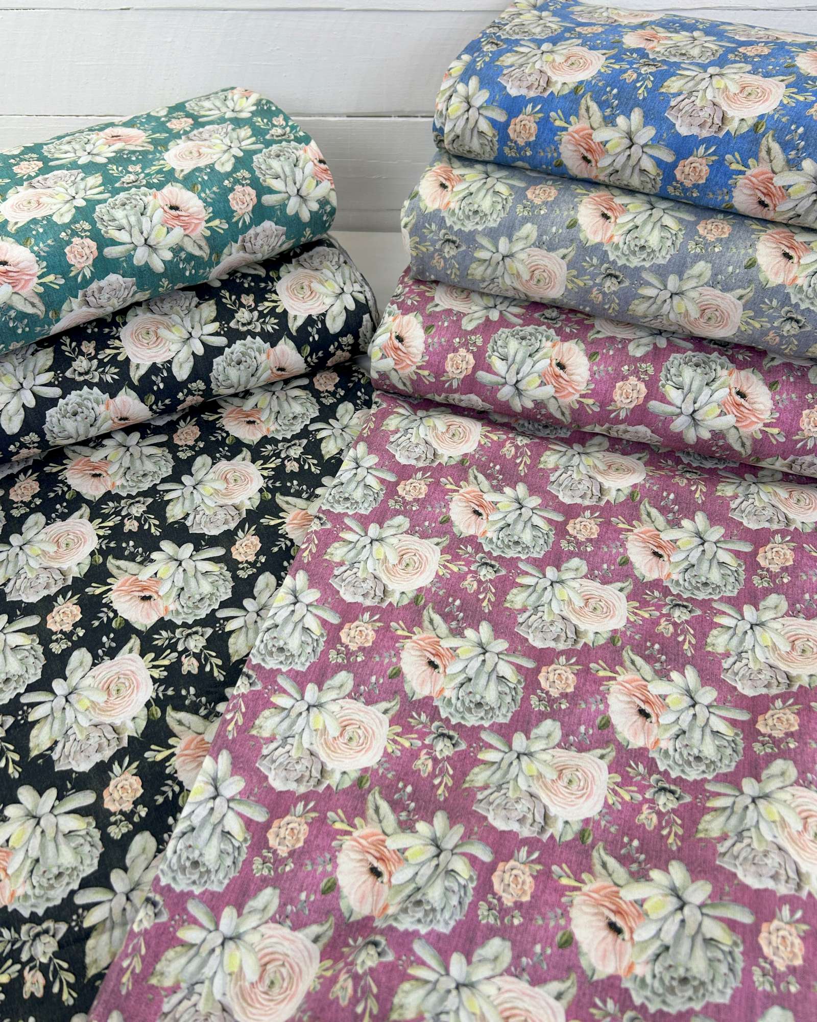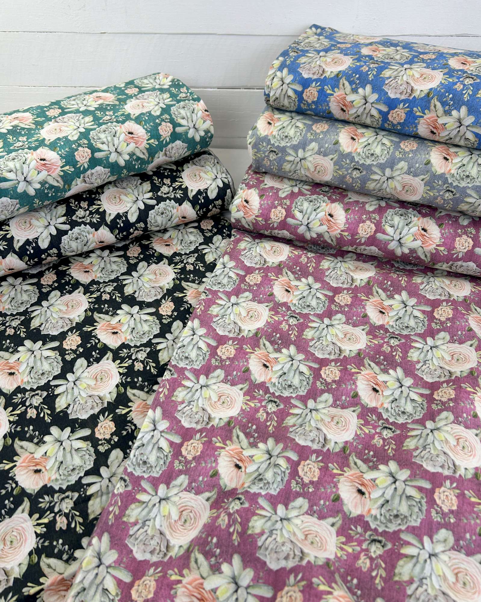Das Design ist der eigentliche Hingucker: romantische Vintage-Blumen mit modernen, leicht pudrigen Farbtönen auf verschiedenen Hintergrundfarben. Genau dieser Mix macht den Stoff so stark – nicht kitschig, sondern stilvoll und absolut im Trend. Die floralen Elemente wirken hochwertig und lassen sich vielseitig kombinieren, egal ob für Kinder oder Erwachsene.