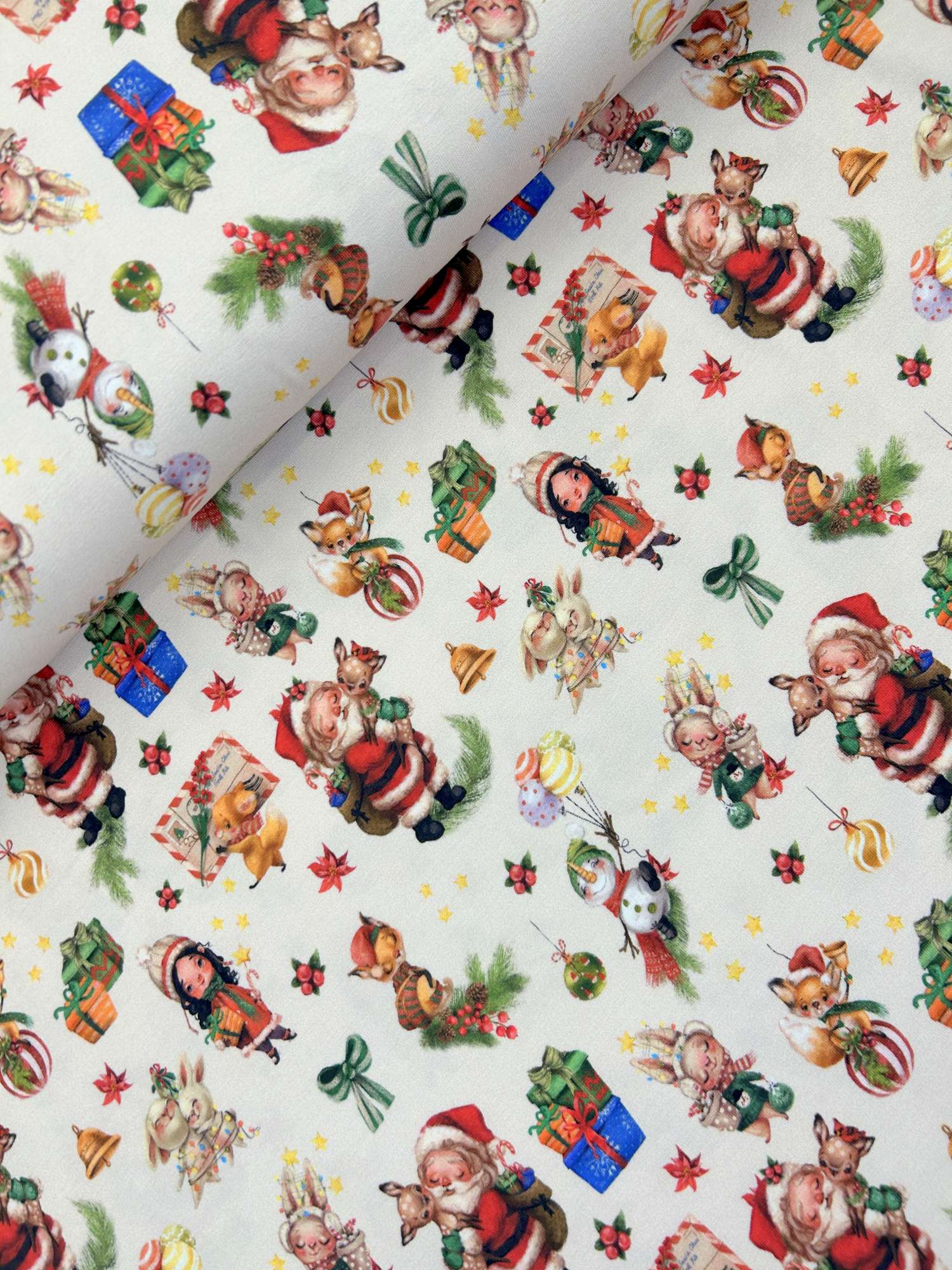 Ein weicher, angenehm elastischer Baumwolljersey mit liebevollen Winter- und Weihnachtsmotiven, der auf Anhieb wie ein kleiner „Winterzauber“ wirkt. Die Illustrationen sind detailreich, warm und kindgerecht gestaltet – ideal für festliche Nähprojekte, die nicht kitschig, sondern hochwertig aussehen. Durch den Elasthananteil trägt sich der Stoff bequem, bleibt formstabil und eignet sich für Kleidung für Kinder und Erwachsene gleichermaßen. Der Jersey ist nach ÖKOTEX STANDARD 100 zertifiziert, besteht zu 95 % aus Baumwolle und zu 5 % aus Elasthan, hat eine Breite von etwa 150 cm und ein Gewicht von rund 200 g/m². Perfekt für Shirts, Kleider, Pumphosen, Leggings, Pyjamas, Beanies oder gemütliche Sets für die Winterzeit.